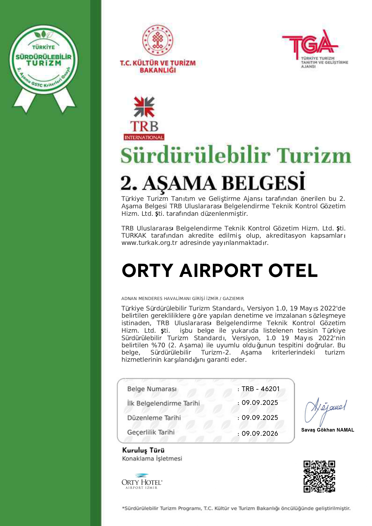 Sürdürülebilir Turizm ve Yeşil Evrim için çalışanların ve işverenlerin aldıkları eğitim ve danışmanlıklar ile birlikte yeşil yakalı çalışanlar ve işverenlere dönüşmesini takiben sürecin tamamlanması ve tesisimizin sürdürülebilirliği için hizmet süreçlerini, uygulamalarını ve alt yapısını da buna uygun hale getirmektir. Buna bağlı olarak uygulamaya geçirilen teknik hususlar sayesinde; enerji ve su tüketiminde azaltma ve yenilenebilir enerji kaynaklarına yönelmek, atıkların azaltılması ve geri dönüşüm uygulamalarının hayata geçirilmesi, kimyasal kullanımın minimum düzeye indirilmesi ve çevre dostu çözüm yöntemlerinin uygulanması gibi hem ekonomik hem de çevreci anlamda pozitif sonuçlar elde edilmesi hedeflenmekteyiz.
